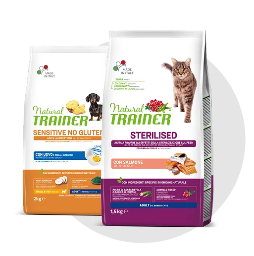 Natural Trainer is a brand that offers a wide range of complete and balanced foods. Our products contain specific ingredients of natural origin, are made with high-quality proteins, fruit concentrates, cereals, and other specific ingredients, selected by our nutritionists to ensure a complete and balanced diet for our beloved pets.